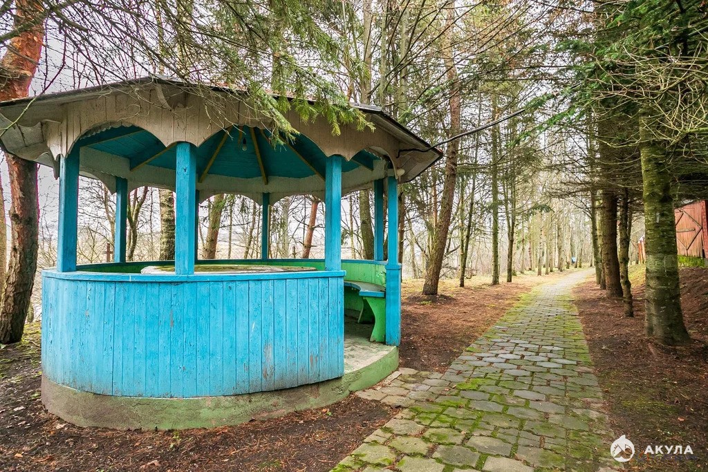 Участок: плодовые деревья, виноградник, теплицы, уличный бассейн, хозпостройки, спуск к озеру.