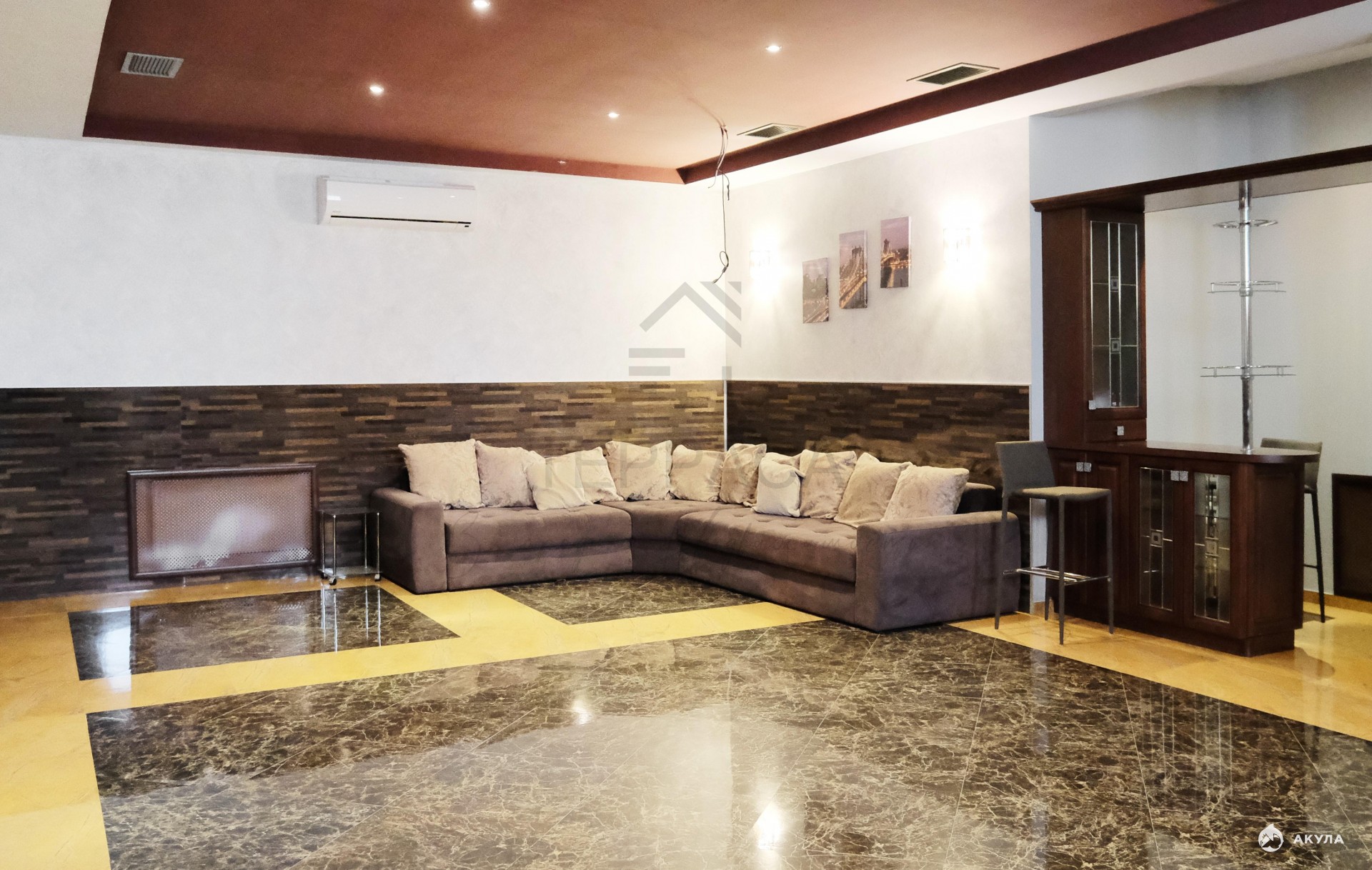 Цокольный этаж – кинотеатр-зона отдыха с баром, спортивный зал, котельная.