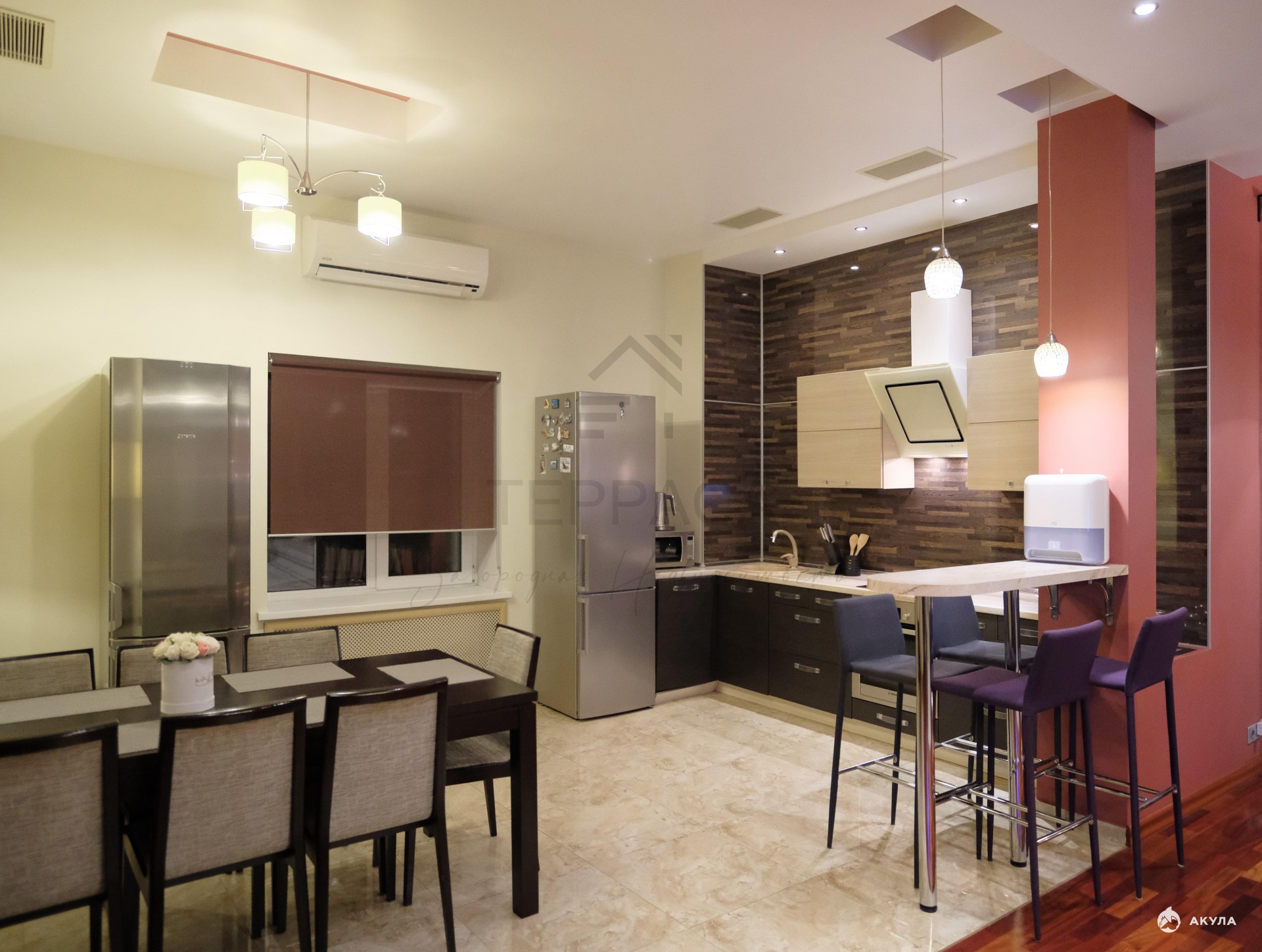 Окна – 2-х камерные пластиковые стеклопакеты профиля SCHUCO в доме и алюминиевый профиль на лоджии.