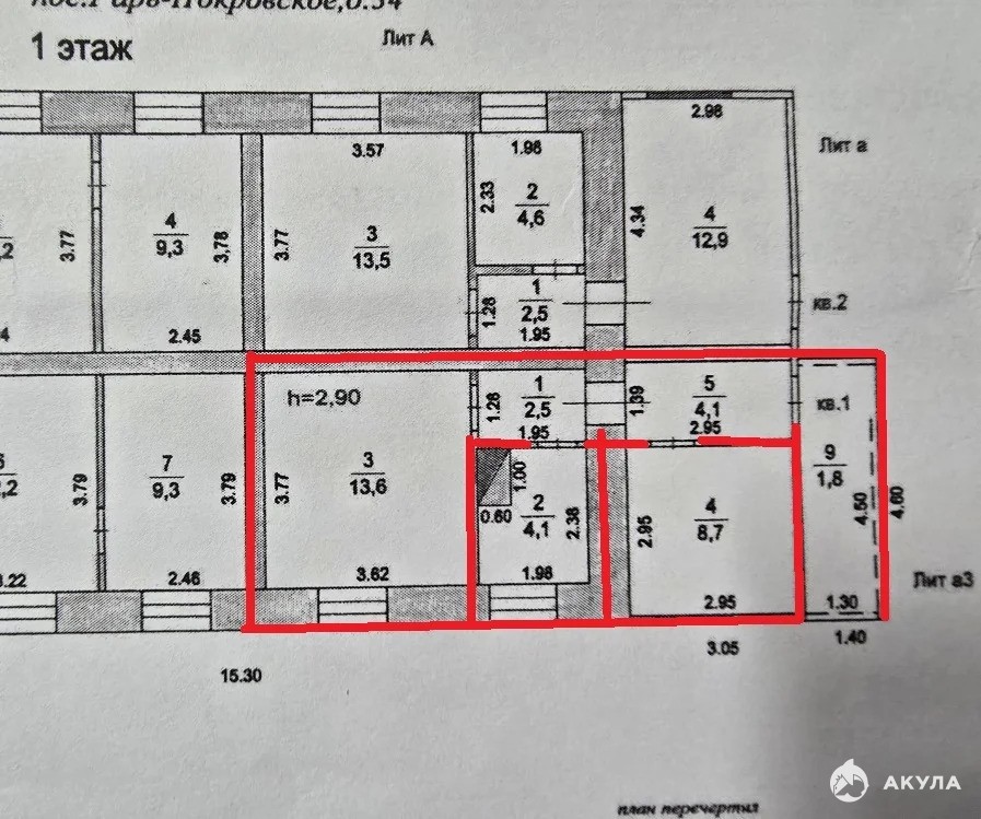 Квартира на 1 этаже, 1-ти этажного кирпичного дома, фасад oбшит сaйдингoм. Общая площадь по документам: 20, 2 кв.м. (по факту 45 кв.м.), кухня-гостинная: 18 (пристроена) кв.м., комната: 13, 6 и кухня 4, 1 кв.м (изолированная) с печью, окна везде пластиковые. Вода - централизованная. Туалет на улице. Отопление-печное. Газ подведен к забору участка.